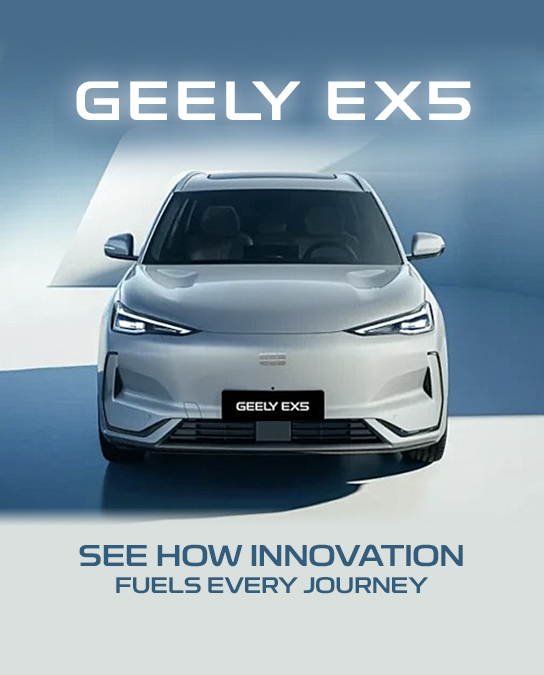 Experience first-class comfort with Geely EX5. Designed with a groundbreaking GEA Global Intelligent New Energy Architecture, turn your drive into an extraordinary adventure.